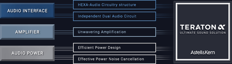 TERATON ALPHA to unikalna technologia Astell&Kern, zaprojektowana z myślą o wiernej reprodukcji dźwięku w jego najczystszej formie. Oferuje skuteczną eliminację szumów mocy, optymalizuje zużycie energii, zapewnia stabilne wzmocnienie, a także gwarantuje precyzyjnie przekonwertowany interfejs wyjściowy audio, dostarczając brzmienie zbliżone do oryginalnego nagrania.