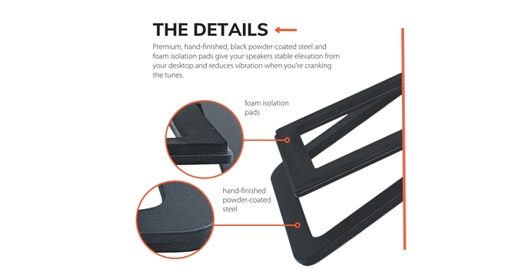 Wykonane z najwyższej jakości, ręcznie wykańczanej stali malowanej proszkowo, DS1Ms nie zawiedzie Cię na drodze modyfikacji systemu audio. Wyposażone w 15-stopniowe nachylenie w pionie oraz piankową wyściółkę, DS1M są zbudowane tak, aby zredukować wibracje powierzchni i zapewnić głośnikom stabilną izolację potrzebną podczas wzbogacania wrażeń odsłuchowych.