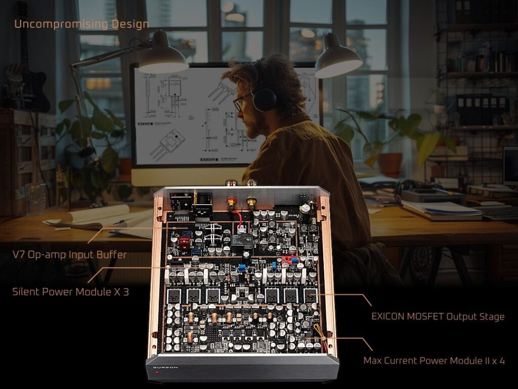 Dzięki zastosowaniu szeregu autorskich technologii, Burson znacząco zwiększył wydajność wzmacniaczy Voyager. Każdy monoblok oferuje moc do 200 W przy obciążeniu 4 Ω, co czyni go idealnym wyborem dla wymagających systemów audio, gdzie liczy się zarówno siła, jak i subtelność brzmienia.