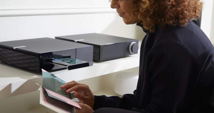 Jedynym celem Evo CD jest obracanie dysków i przekazywanie dokładnych informacji muzycznych do Evo. Pozwala to na uzyskanie minimalistycznego projektu – za pomocą jednego przycisku na panelu przednim można otworzyć/zamknąć metalową tackę na płyty CD. Całą resztą steruje się za pomocą pilota Evo lub aplikacji StreamMagic na Twoim urządzeniu inteligentnym. Okładki albumów CD i informacje o utworach są pięknie wyświetlane na kolorowym wyświetlaczu Evo o przekątnej 6,8 cala.