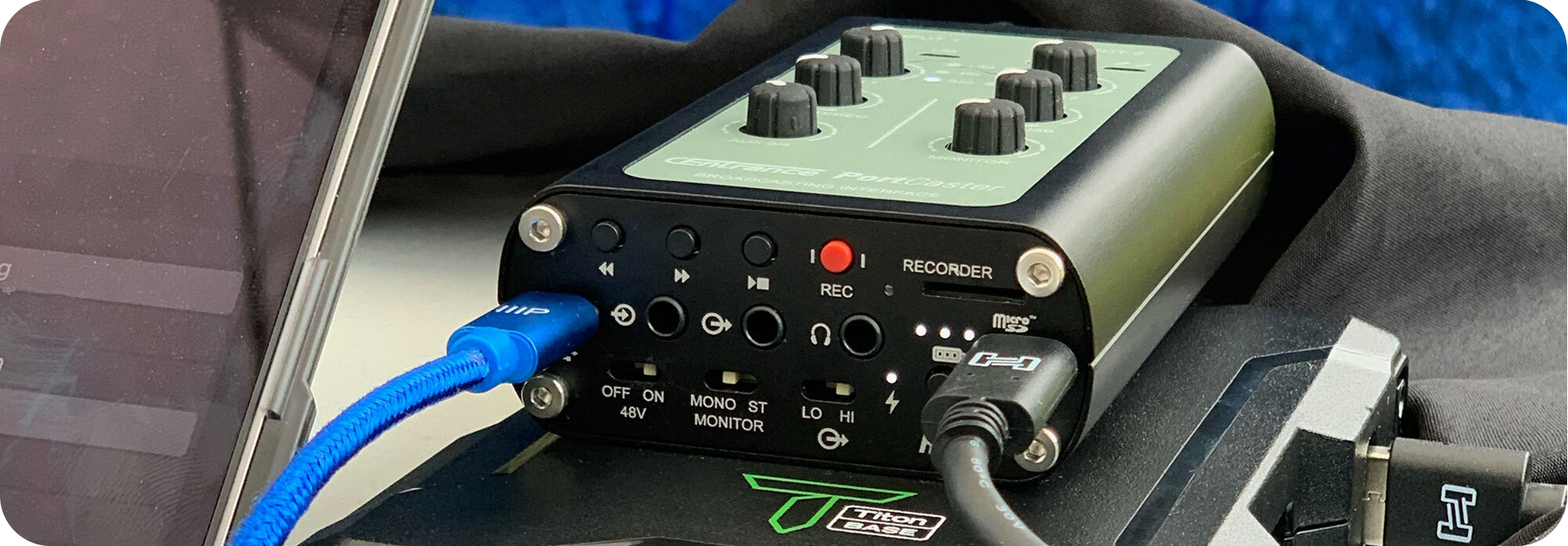 PortCaster lubi przebywać na zewnątrz. Zaprojektowaliśmy jego system akumulatorów tak, aby zapewnić niezawodną pracę w terenie. Obudowa jest wykonana z lekkiego aluminium, a dotykowe elementy sterujące sprawiają, że regulacja jest szybka i łatwa. Wbudowany rejestrator SD w połączeniu z naszymi niestandardowymi mikrofonami stereo XY zamienia PortCaster w profesjonalny, wysokiej klasy rejestrator mobilny.
