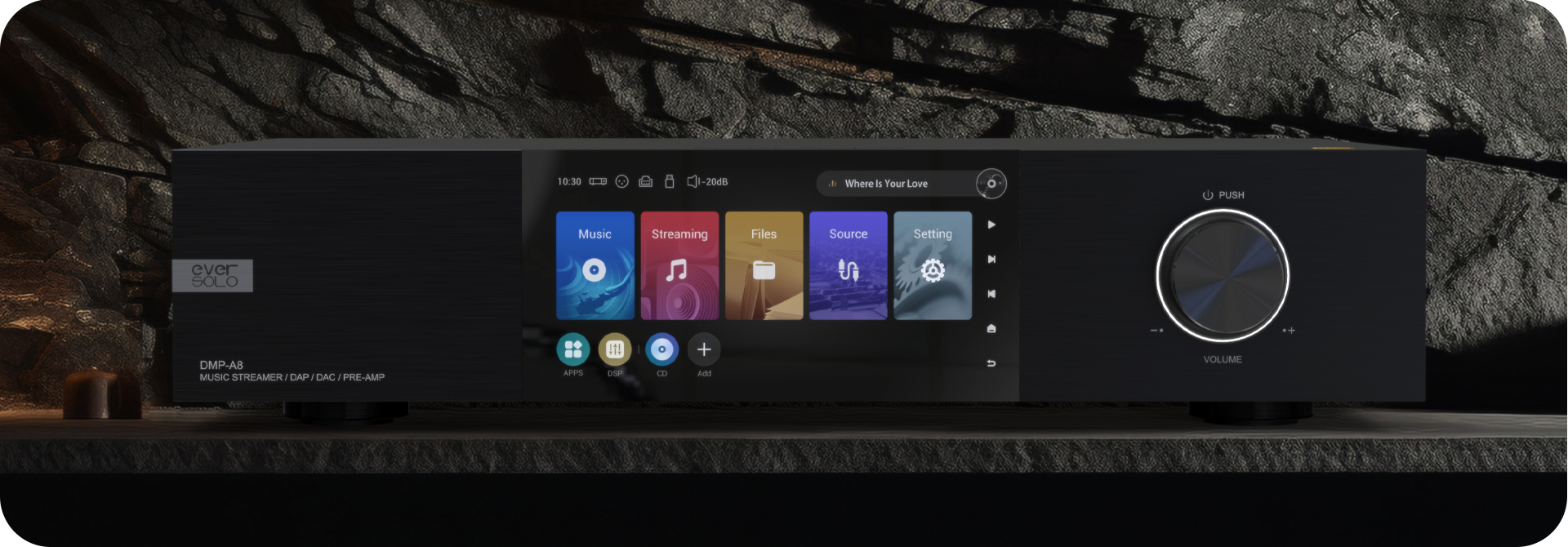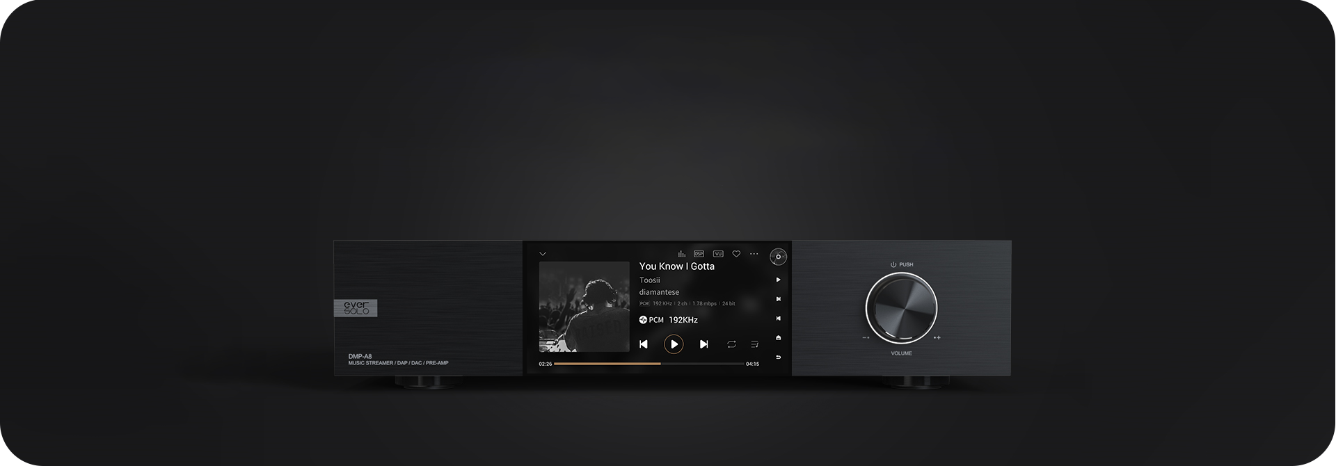 DMP-A8 to topowe urządzenie typu all-in-one od EverSolo, które może pełnić rolę odtwarzacza sieciowego, jak również tradycyjnego odtwarzacza audio, przetwornika cyfrowo-analogowego, czy przedwzmacniacza. To niezwykle uniwersalne rozwiązanie, które może stanowić niezwykle ważny element różnych systemów audio. Model DMP-A8 oferuje dostęp do usług streamingowych jak Tidal, Qobuz, Deezer, Apple Music i Amazon Music, a dodatkowo wspiera technologie Tidal Connect i DLNA.