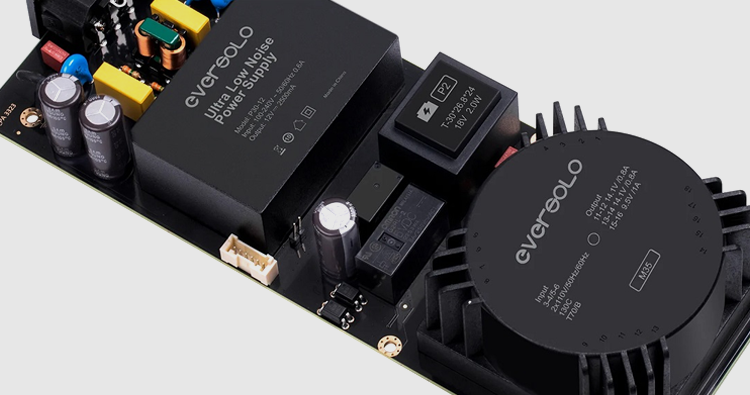 EverSolo zastosował w DMP-A8 konstrukcję z niezależnymi obwodami zasilania, aby wyeliminować zakłócenia i szumy pomiędzy sekcją cyfrową a analogową oraz zwiększyć czystość dźwięku. Liniowy zasilacz bazuje na transformatorze toroidalnym zaprojektowanym tak, aby idealnie pasował do charakterystyki analogowych obwodów audio. Wysokiej klasy zasilacz impulsowy jest zoptymalizowany pod kątem obwodu systemowego. Rozwiązanie to redukuje falowanie i zakłócenia w przetwarzaniu dźwięku. Ponadto liniowy zasilacz w DMP-A8 posiada inteligentny system przełączania napięcia wejściowego, co umożliwia automatyczne dostosowanie do odbieranego sygnału.