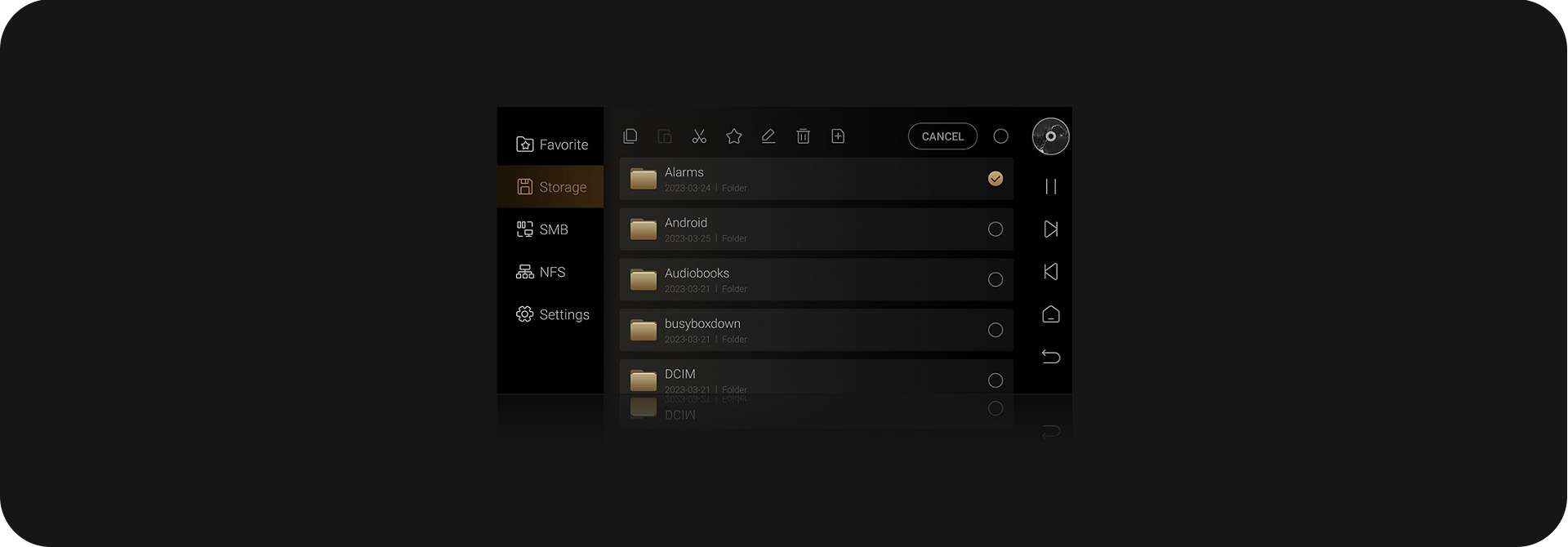 EverSolo DMP-A8 daje dostęp do zaawansowanego systemu zarządzaniu plikami, który umożliwia ich kopiowanie, wklejanie, wycinanie i usuwanie z lokalnego dysku lub pamięci sieciowej. Port USB-C można skonfigurować w trybie OTG, dzięki czemu streamer można podpiąć do komputera w celu kopiowania i organizowania plików. Funkcja udostępniania SMB umożliwia przesyłanie plików z podłączonego urządzenia mobilnego lub wewnętrznej pamięci SSD do innych urządzeń odtwarzających, takich jak komputer lub urządzenie mobilne w sieci LAN. W ten sposób DMP-A8 może służyć jako uniwersalne sieciowe urządzenie magazynujące, dające dostęp do plików