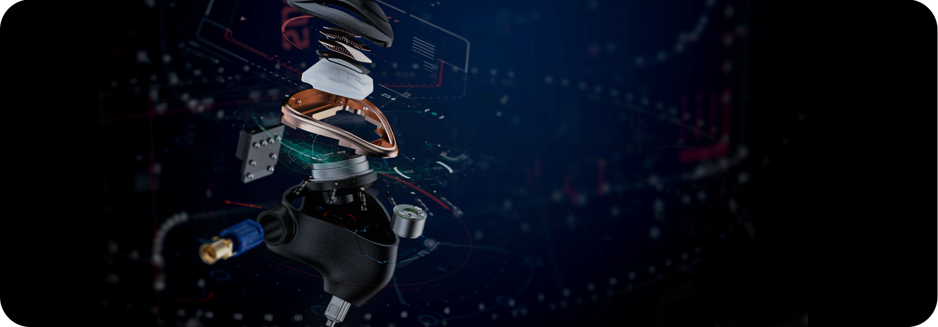 Dynamiczny przetwornik niskotonowy Tesla trzeciej generacji o średnicy 12 mm został zaprojektowany tak, aby zapewniać niezwykle wysokiej jakości basy. Dzięki sztywnej, ale elastycznej uszczelce z polimeru poliuretanowego oraz kopułce membrany pokrytej berylem i magnesom N52 o mocy 1,5 Tesli, ten przetwornik jest w stanie uzyskać naprawdę głęboki i mocny, ale kontrolowany bas.