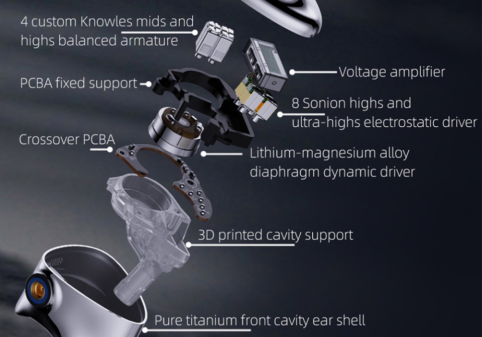 - 8 elektrostatycznych przetworników Sonion zapewniających najwyższą precyzję brzmienia