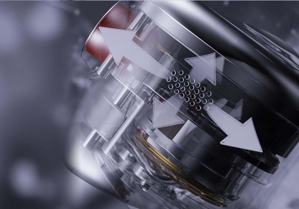 FIIO Acoustic Center, inspirowane technologią turbo w supersamochodach, opracowało opatentowaną konstrukcję akustyczną S.Turbo z systemem turbodoładowania dźwięku. Specjalnie zaprojektowana struktura prowadzi dźwięk w sposób, który intensyfikuje bas, czyniąc go głębokim i dynamicznym. Jednocześnie skutecznie filtruje nadmiar średnich i wysokich częstotliwości z przetwornika dynamicznego, zapewniając płynne przejścia tonalne oraz bogatszy, bardziej nasycony dźwięk.