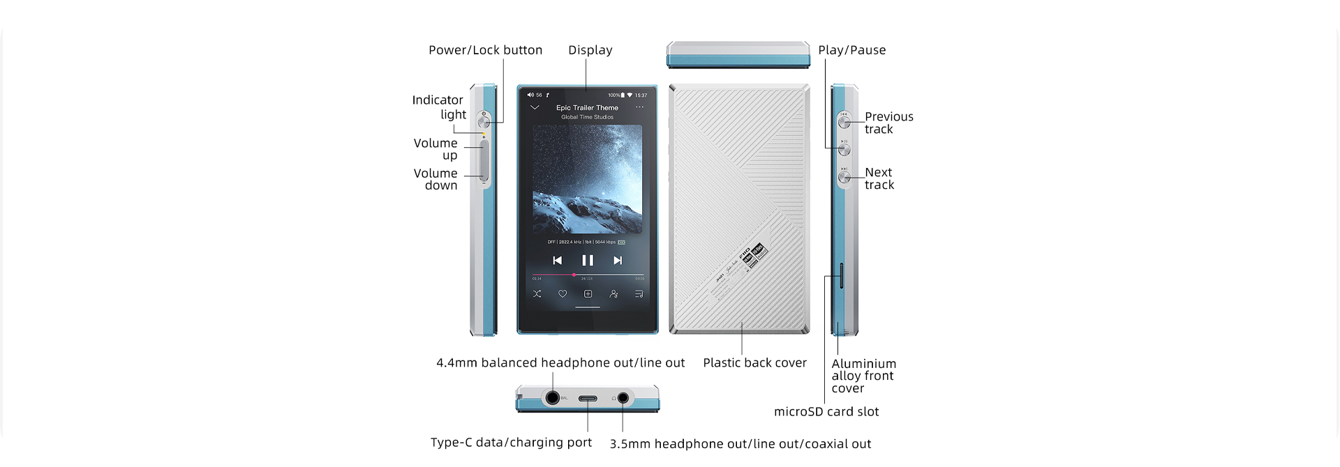 - Tryb pracy: Tryb Android/Tryb Pure Music/Tryb USB DAC/Tryb odbioru Bluetooth