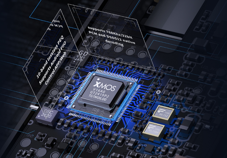 Dodatkowo, XMOS XU316 umożliwia stosowanie 10-pasmowego korektora PEQ bez strat jakości, który można precyzyjnie dostroić zarówno przez aplikację FiiO Control na Androida, jak i poprzez przeglądarkę internetową — pozwalając użytkownikowi uzyskać idealne brzmienie w każdym środowisku.