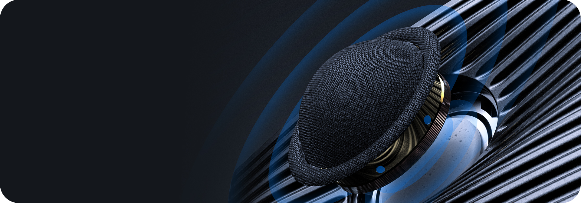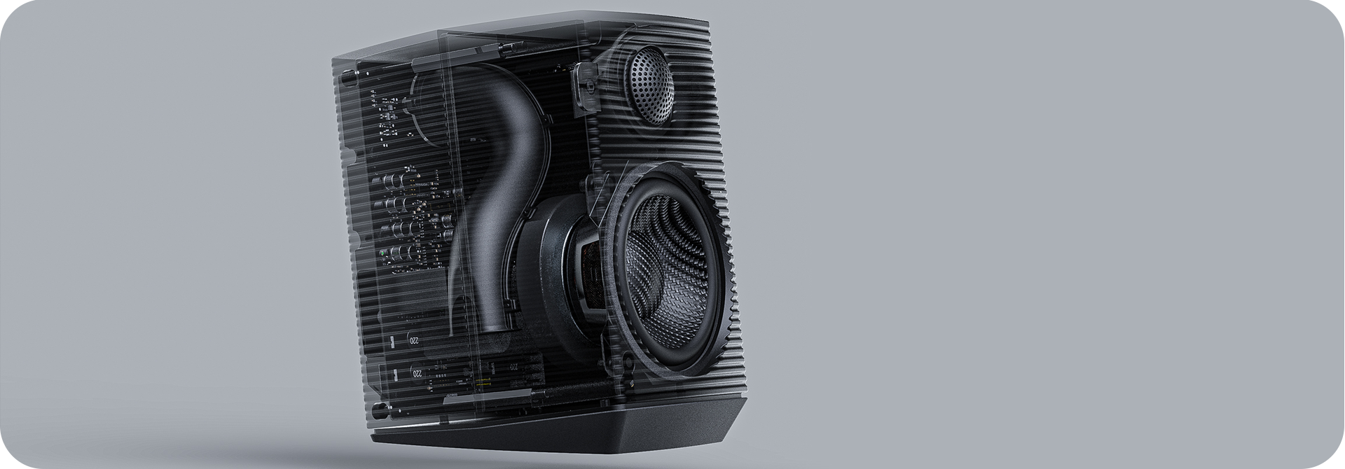 Ponadto poziomy wzór ‘w paski’ przed głośnikiem wysokotonowym został zaprojektowany w taki sposób, aby fale dźwiękowe emitowane przez głośnik wysokotonowy mogły skuteczniej rozpraszać się w pomieszczeniu, znacznie poprawiając postrzeganą scenę dźwiękową i zapewniając wrażenie przebywania w wielkiej sali koncertowej.