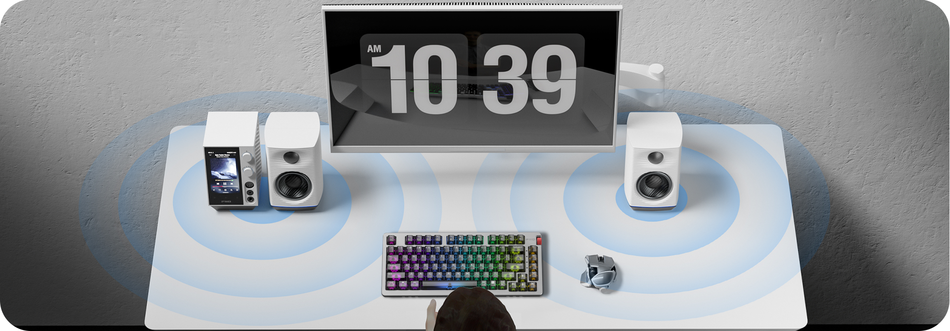 Aby łatwiej było stwierdzić, co robią głośniki, zespół programistów skonfigurował system oświetlenia RGB, aby wyraźnie wyświetlać ich aktualny stan. Ponadto dostępne są również różne efekty oświetlenia RGB, które można dowolnie regulować, aby jeszcze bardziej ulepszyć atmosferę podczas słuchania.