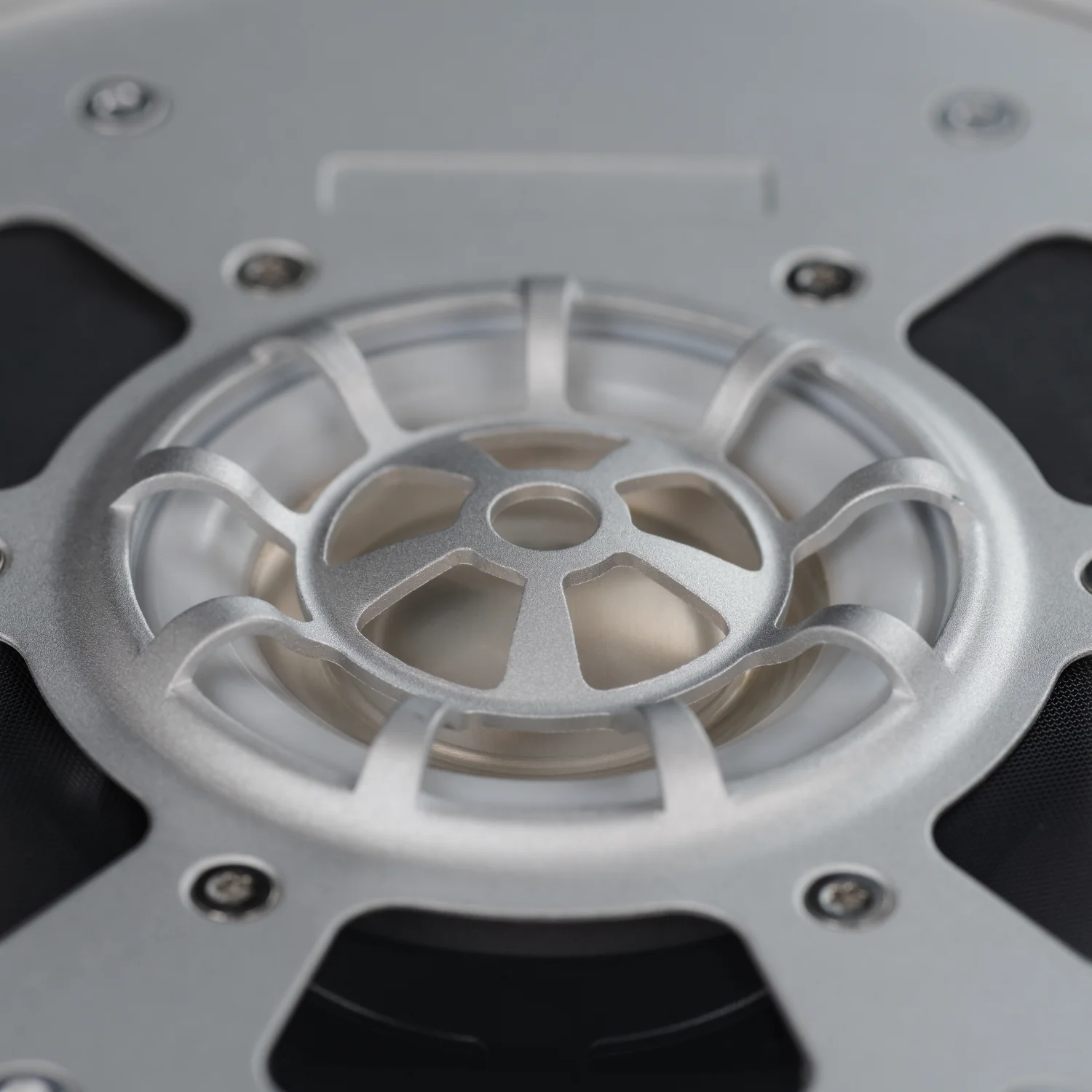 Dodatkowo zastosowanie elastycznego i swobodnie poruszającego się materiału do konstrukcji krawędzi umożliwia uzyskanie niskiej wartości f₀, co przekłada się na głębokie i dynamiczne niskie tony. Dzięki tej technologii udało się zachować przestrzenną scenę muzyczną oraz precyzyjną odpowiedź na transjenty – dźwięki o wyjątkowo szybkim narastaniu i opadaniu.