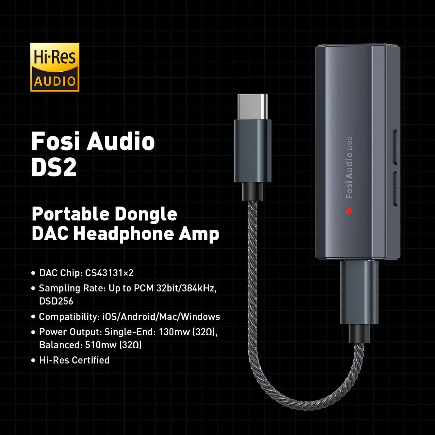 Zmodernizowany moduł wzmacniacza zapewnia imponującą moc wyjściową – aż 510 mW przy obciążeniu 32 Ω na zbalansowanym wyjściu 4,4 mm. Dzięki temu DS2 bez trudu napędza nawet bardziej wymagające słuchawki, zachowując przy tym kompaktowe rozmiary i mobilność.