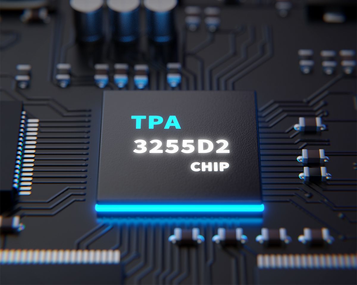 Fosi Audio M03 wykorzystuje zaawansowany wzmacniacz klasy D oparty na układzie TPA3255D2 renomowanej amerykańskiej firmy Texas Instruments. Dzięki temu rozwiązaniu urządzenie oferuje imponującą moc wyjściową do 200 W przy zastosowaniu standardowego zasilacza 32 V / 5 A. Aby osiągnąć maksymalną moc 300 W, wymagane jest zastosowanie mocniejszego zasilacza.