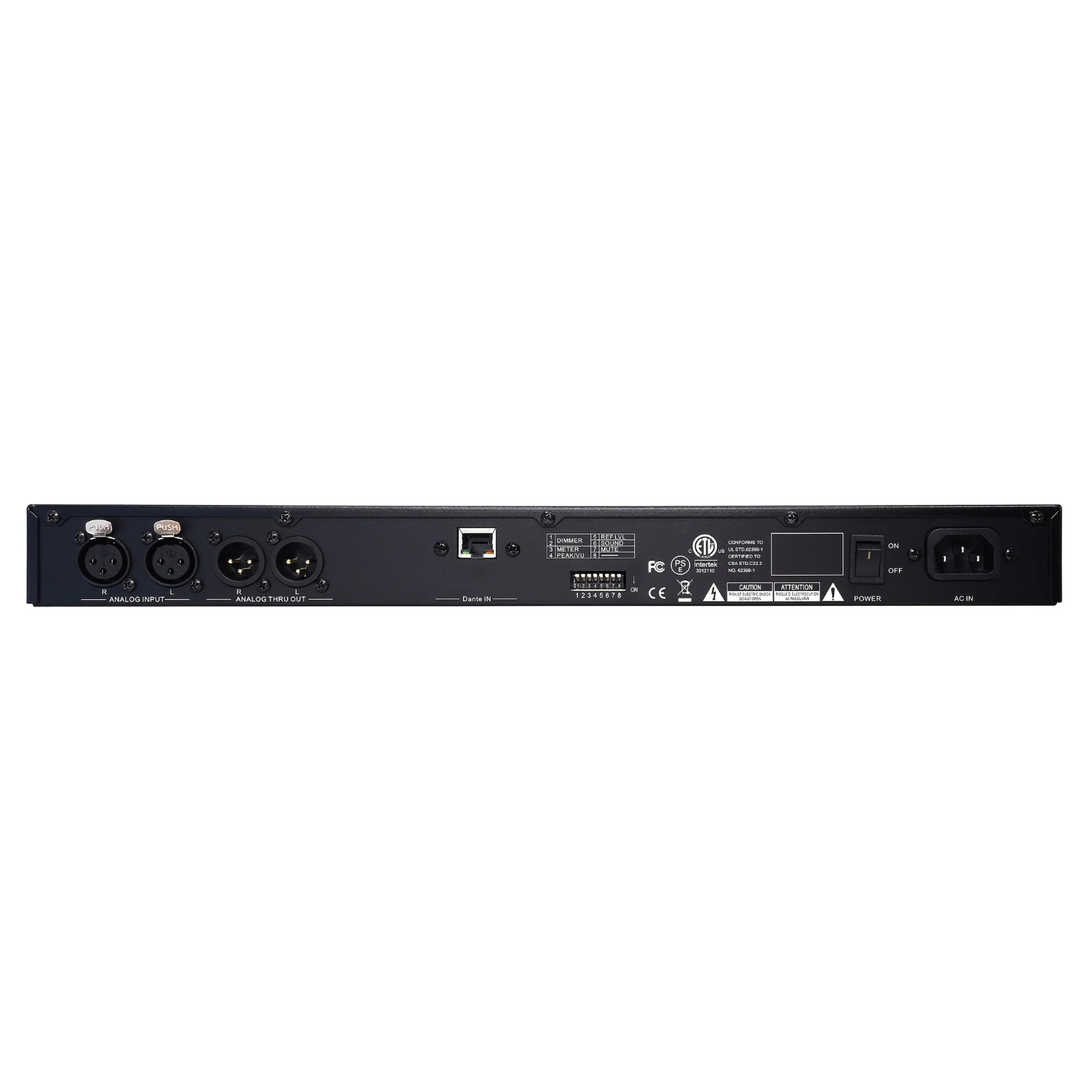 • Akceptuje zbalansowane wejście analogowe i wejście Dante®.