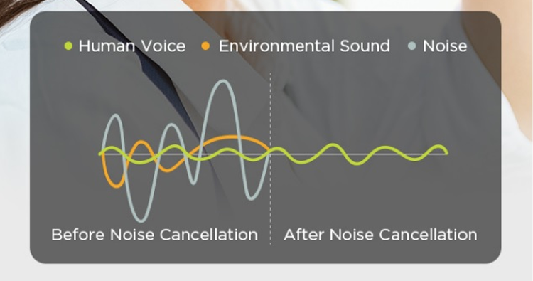 Algorytm sztucznej inteligencji (Al) symuluje ludzki układ słuchowy, wydobywając ludzki głos i odfiltrowując hałas otoczenia. Nie ma potrzeby krzyczeć, gdy dzwonisz z hałaśliwego otoczenia.
