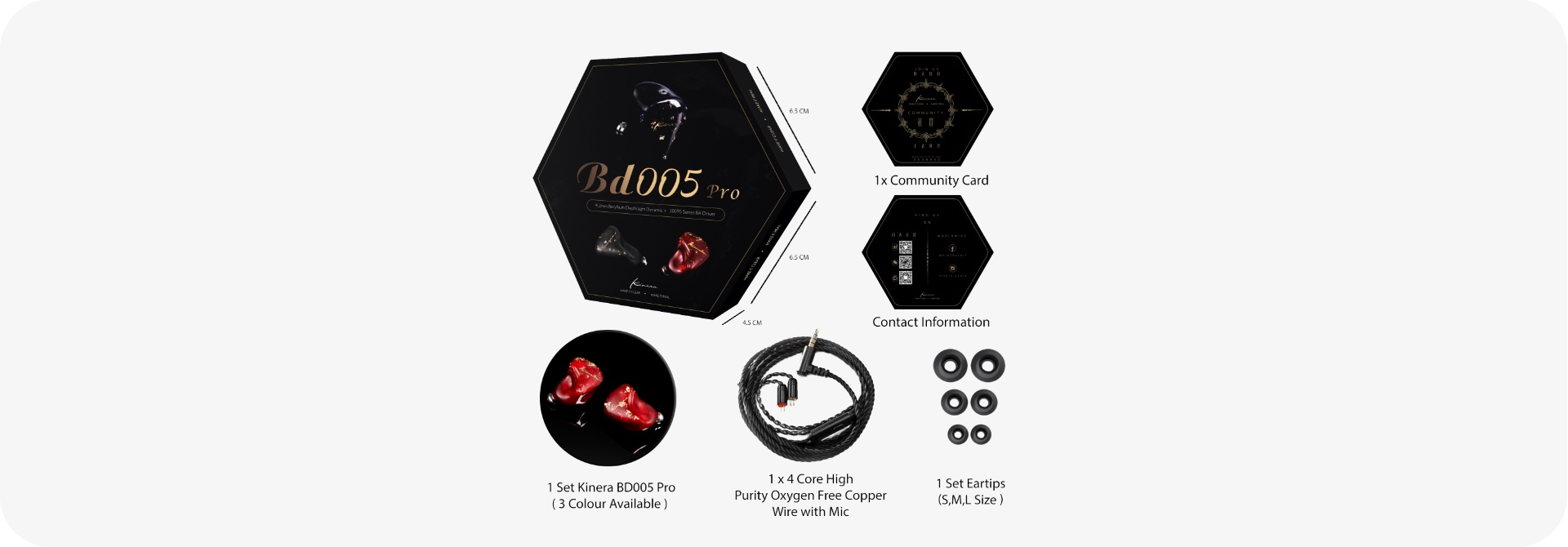 Wokale są bogate i głębokie, a dźwięk naturalny i krystalicznie czysty. 9,2 mm przetwornik Beryllium DD tworzy czystą, wyraźną, szczegółową, szeroką i bogatą scenę dźwiękową. Niestandardowy zbalansowany przetwornik armaturowy zapewnia jeszcze lepszą rozdzielczość wysokich częstotliwości i bogatsze szczegóły muzyczne, w wyniku czego BD005 Pro zapewnia najwyższą jakość oraz niezapomniane doznania odsłuchowe.