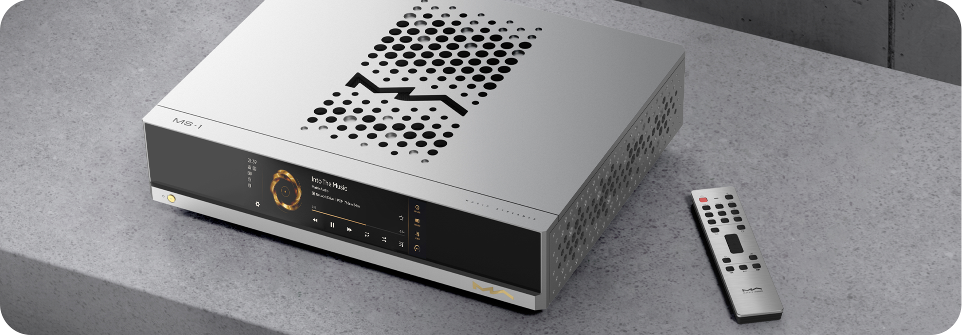 Urządzenie źródłowe jest duszą systemu audio. Sprzęt stanowi korpus MS-1, podczas gdy oprogramowanie jest duszą. Nie tylko stawiamy na jakość dźwięku, ale także skupiamy się na doświadczeniu użytkownika. Uproszczamy interakcję człowiek-maszyna i kładziemy nacisk na wyświetlanie informacji o muzyce na ekranie urządzenia. Nalegamy na umożliwienie Ci wygodnego sterowania całym systemem audio z pozycji odsłuchu, podnosząc telefon lub tablet, aby obsługiwać go za pomocą aplikacji MA Remote, zamiast często wstawać, aby dotknąć urządzenia. Nawet od podstawowych funkcji, takich jak zmiana głośności, wybór utworu i odtwarzanie, po konfiguracje, takie jak filtry, tryby pracy i jasność wyświetlacza, wszystko można zrobić w aplikacji. Wszystko to jest obsługiwane przez nasz skrupulatnie opracowany system oprogramowania MA Player.