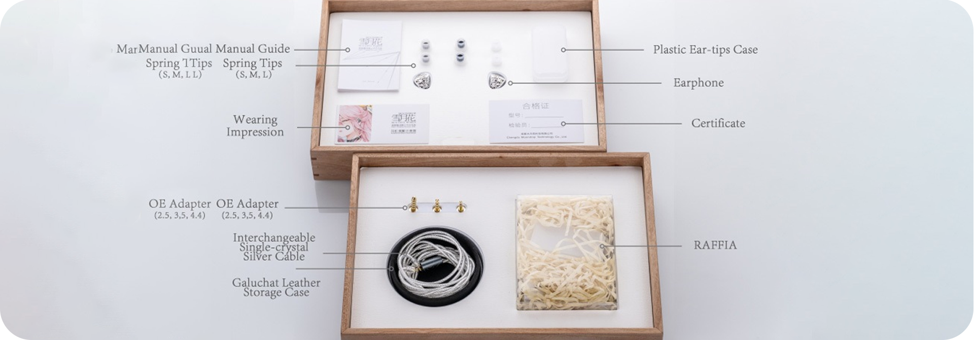 W zestawie znajdziemy kabel ze srebra monokrystalicznego o wysokiej przepuszczalności i trwałości oraz wymienne wtyczki.