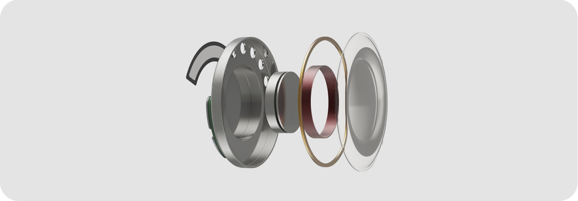 Ten 13-milimetrowy przetwornik dynamiczny składa się z kompozytowej, ultracienkiej, elastycznej membrany zawieszenia z tytanową kopułką, dzięki czemu oferuje więcej detali w zakresie wysokich tonów niż zwykłe duże przetworniki dynamiczne. Jak zawsze zastosowaliśmy ultracienką cewkę Daikaku CCAW importowaną z Japonii, aby zapewnić najniższą możliwą masę systemu zawieszenia, dzięki czemu słuchawki mogą oferować szybszą reakcję przejściową i jeszcze bardziej poprawić szczegółowe działanie. System obwodu magnetycznego został udoskonalony dzięki większej strukturze obwodu magnetycznego i magnesowi neodymowemu N52, co zapewnia lepszą dynamikę.