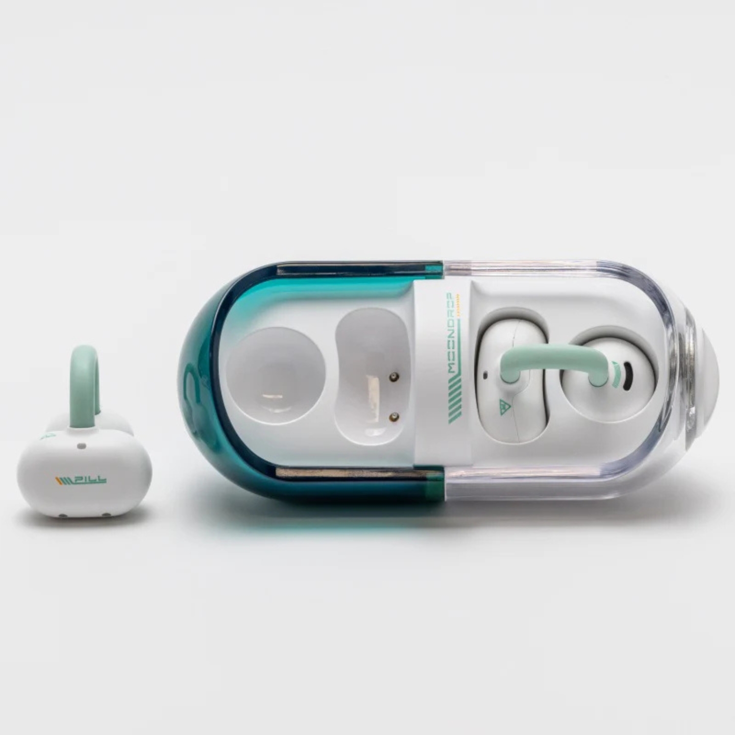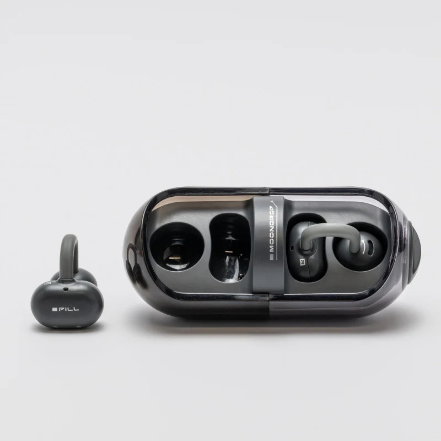 PILL łączy wysoką jakość dźwięku z innowacyjną konstrukcją zacisku na ucho, która pozostaje stabilna i wygodna przez cały dzień – nawet w połączeniu z okularami. Dzięki gładkim, zaokrąglonym punktom styku oraz elastycznemu, pamiętającemu kształt mostkowi C, wykonanemu z ciekłego silikonu i drutu z pamięcią kształtu z tytanu, zapewnia perfekcyjne dopasowanie i komfort użytkowania.