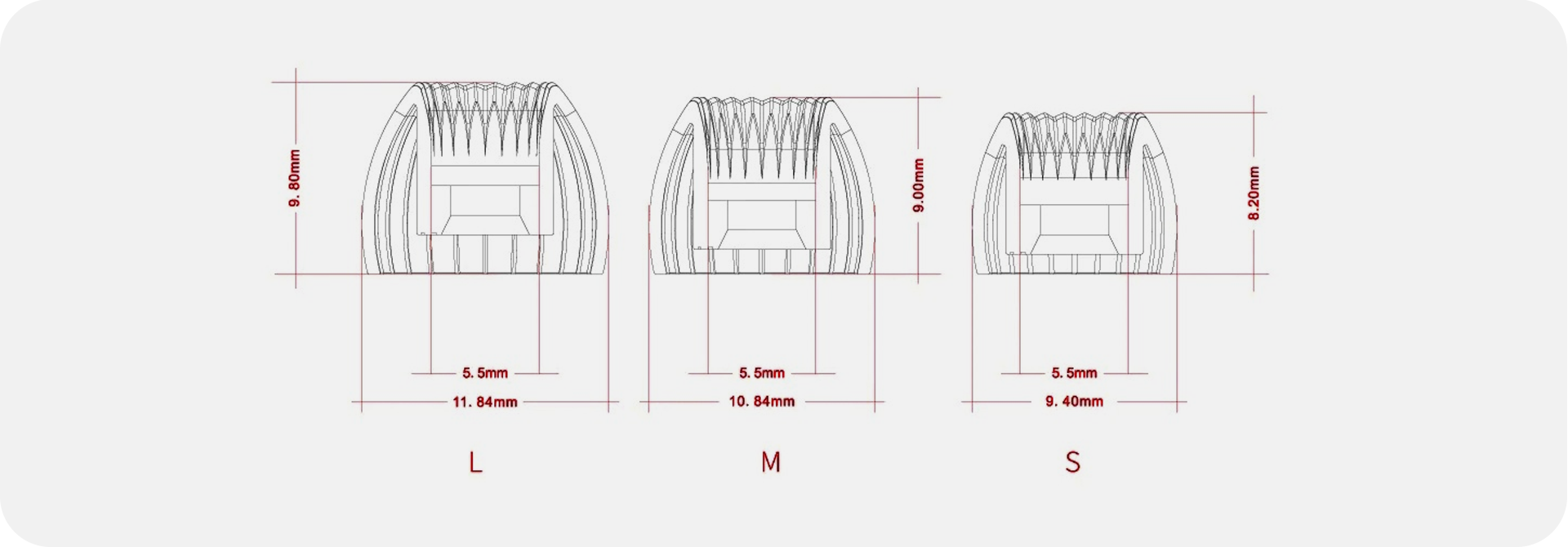 W tym przypadku zaprojektowaliśmy nowy typ końcówek dousznych z żelem krzemionkowym, w którym zastosowano proces formowania wtryskowego z podwójną formą, a korpus końcówek jest zintegrowany z nowo opracowaną strukturą falowodu wysokiej częstotliwości i promieniową konstrukcją nośną, co poprawia wsparcie osi centralnej, zapewniając miękkość i komfort noszenia, czyniąc końcówki trwałymi i niełatwymi do odkształcenia. Dodatkowo skutecznie zapobiega wyciekom basów, jednocześnie korygując barwę wysokich tonów, tak aby uzyskać jeszcze lepsze wrażenia odsłuchowe.