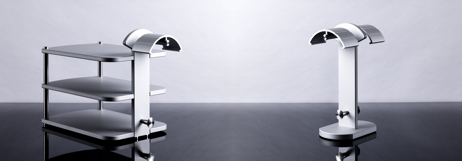 Już na etapie projektowania było dla nas oczywiste, że finalny produkt musi być wykonany z najlepszych materiałów. Stąd oczywisty wybór aluminium i stali nierdzewnej – materiałów mocno kojarzonych z rynkiem audio. Aluminium o grubości 12 i 15 mm zapewnia poczucie solidności i stabilności. Główka wieszaka została specjalnie dla nas zaprojektowana i wykonana na wymiar, również z aluminium. Optymalny promień, długość łuku i wgłębienia nie tylko bezpiecznie trzymają słuchawki, ale także pozwalają na odpowiednią wentylację pałąka. Całość uzupełniają łączniki i haczyki wykonane ze stali nierdzewnej według naszego projektu. Ich kształt ułatwia organizację i zawieszenie kabla po zakończeniu odsłuchu. Aluminium jest metalem szlachetnym i jego stopy różnie reagują na proces anodowania. Nie mamy na to wpływu – zmienność jego wyglądu w zależności od gry światła i rozmieszczenia w strukturze magnezu, siarki i krzemu – składniki użytego stopu decydują o jego naturalnych właściwościach. Jest to cecha wyróżniająca, a nie wada.