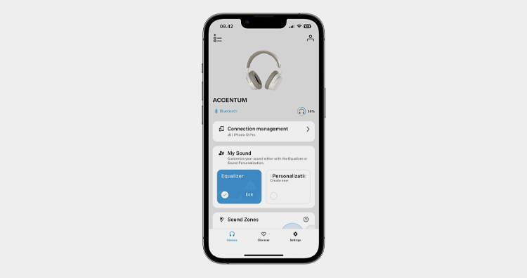 Aby uzyskać naprawdę spersonalizowane wrażenia, pobierz aplikację Sennheiser Smart Control, aby łatwo dostosować dźwięk za pomocą 5-pasmowego wbudowanego korektora, różnych trybów dźwięku i stref dźwiękowych.