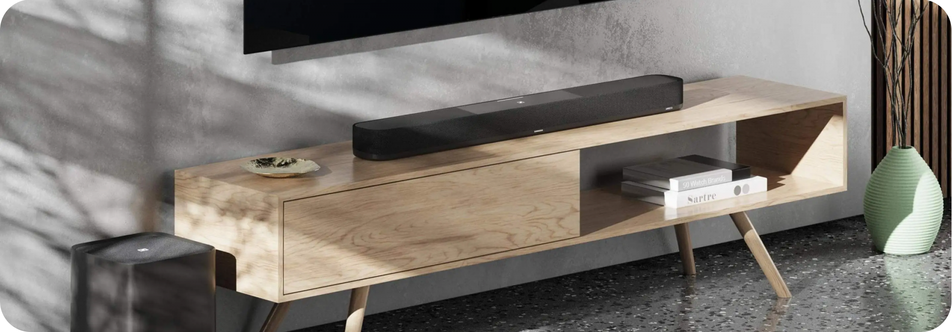 - Najnowocześniejsza technologia wirtualizacji AMBEO, opracowana wspólnie z Instytutem Fraunhofer IIS, zapewnia niezwykle głęboki bas.