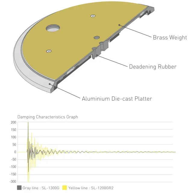 Dzięki takiej budowie gramofon osiąga płynną i stabilną rotację oraz imponującą masę bezwładnościową – większą niż w modelu SP-10MK2, uznawanym za standard w profesjonalnych stacjach nadawczych, oraz ponad dwukrotnie wyższą niż w popularnym SL-1200MK5.