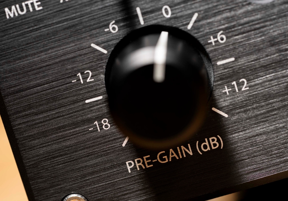 Regulacja PRE-GAIN umożliwia optymalne dopasowanie poziomu sygnału z różnych źródeł i dla różnych słuchawek. Gwarantuje precyzyjną kontrolę głośności, kompensuje wahania poziomów wejściowych i zapewnia znakomitą jakość dźwięku — przy minimalnym poziomie szumów, praktycznie bez zniekształceń i z idealnym balansem kanałów.