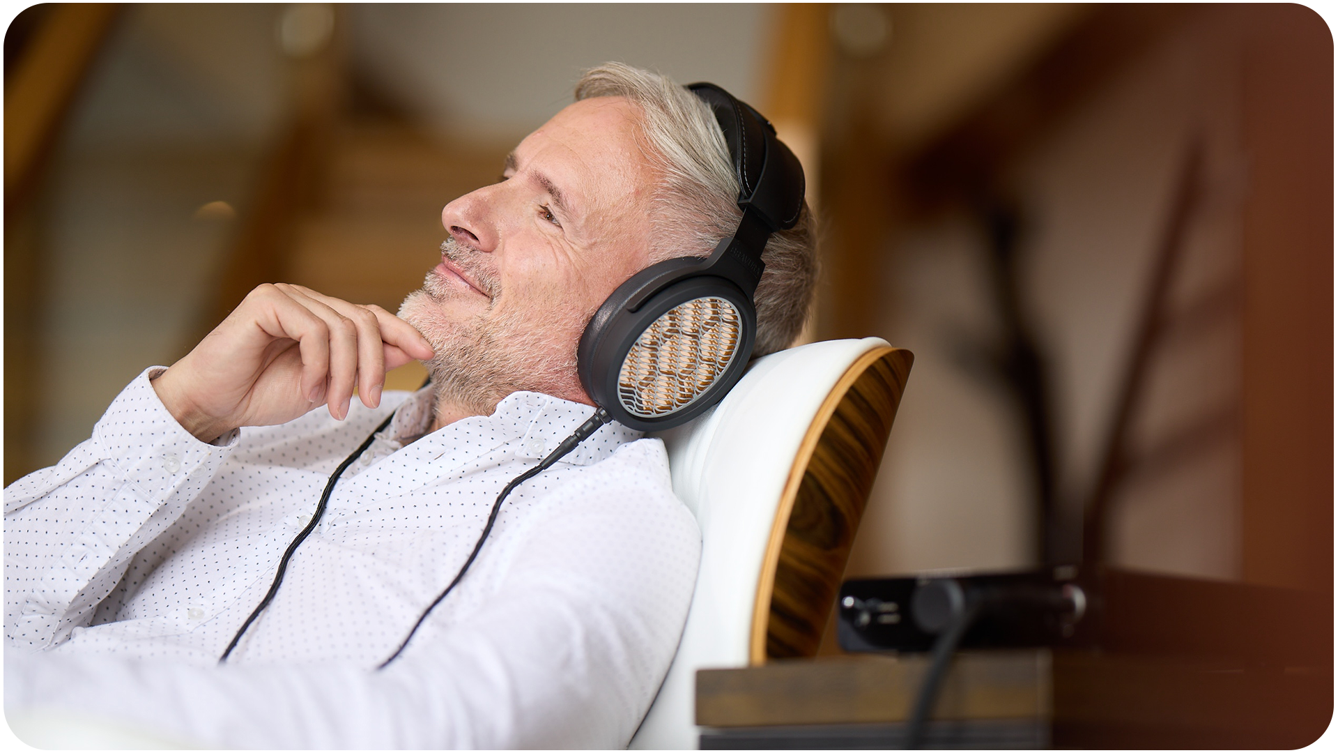 Komfort w słuchawkach ma ogromne znaczenie. Chcemy, abyś mógł cieszyć się M1 podczas dłuższych sesji odsłuchowych. Uzyskanie doskonałego brzmienia, lekkiej konstrukcji byłoby na nic, gdyby poduszki na ucho i pałąk wywoływały dyskomfort. Tak więc, aby zapewnić maksymalną przyjemność słuchania, podkładki w M1 są ręcznie wykonane z wierzchniej skóry Cabretta ze skóry owczej. Skóra Cabretta słynie z lekkości, gładkości, elastyczności i trwałości.